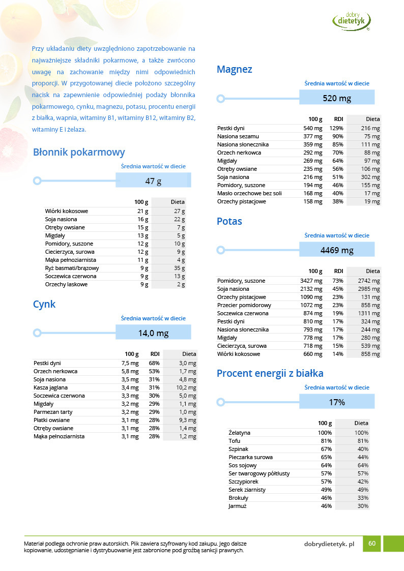 Dodatkowo do opracowanego planu dietetycznego otrzymasz atrakcyjnie przygotowane ciekawostki i wiadomości żywieniowe, które mam nadzieję pozwolą Ci zrozumieć wiele spraw związanych z nurtującym Cię problemem, a także przyczynią się do zwiększenia ogólnej wiedzy żywieniowej.